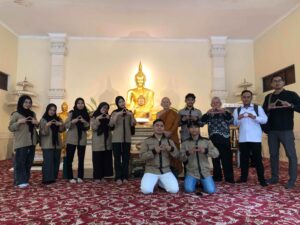 Magelang-Pada Senin, 08/12/25, mahasiswa Program Studi Studi Agama-Agama (SAA) angkatan 2024 melakukan kunjungan ke Vihara Mendut Magelang sebagai bagian dari mata kuliah Agama Budha yang diampu oleh dosen Djurban, M.A. dan didampingi oleh Thiyas Tono Taufiq, M.Ag dan Aulia Rakhmat, M.A. Kegiatan ini bertujuan memperluas pemahaman mengenai agama Buddha, khususnya dari perspektif pemeluknya sendiri. Rombongan disambut oleh Bhante Sri Pannyavaro Mahathera yang sekaligus menjelaskan sejarah Budhisme khususnya Vihara Mendut sekaligus berkeliling menikmati situs-situs penting di Vihara ini.